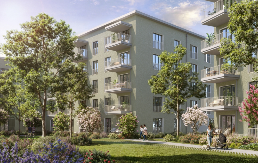 Neubauwohnungen im boomenden Münchner Norden – moderne Architektur, erneuerbare Energien und Materialien, die gesundes Wohnen neu definieren.